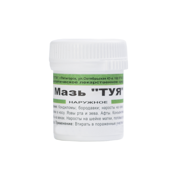 Мазь Туя содержит в своем составе экстракт растения Туя, традиционно применяемого в гомеопатии для лечения различного рода разрастаний на коже и слизистых оболочках. Использование мази приводит к обратному развитию разрастаний, снимает воспаление, зуд, боли.
